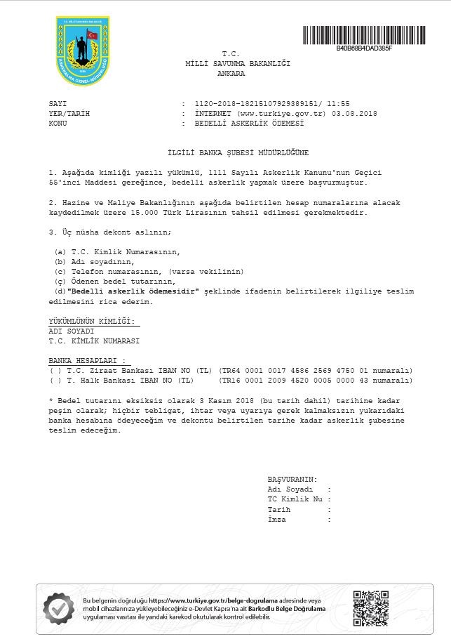 Www.resmigazete.gov.tr bedelli askerlik. Askerlik yaşı gelmiş ancak askere gitmek istemeyen belli bir döenm erteleyerek daha sonra askere gitmek isteyen kişiler askerliğini ilgili yasalara göre erteleyebilir. Anılan Kanunla ilgili uygulama yönetmeliği Başkonsolosluğumuza ulaştıktan sonra dövizle ve bedelli askerlik başvuruları kabul edilebilecektir. Bu tutarları Savunma Sanayii Destekleme Fonuna aktarmak üzere.