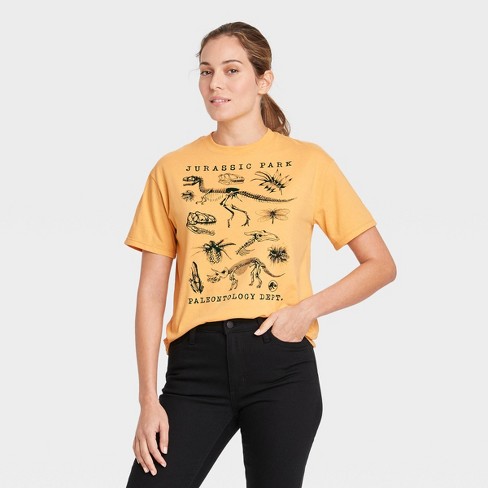 Women S Jurassic Park Grid Short Sleeve Graphic T Shirt Mustard Target